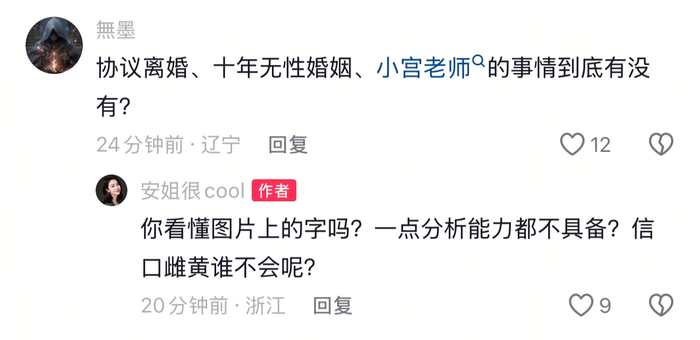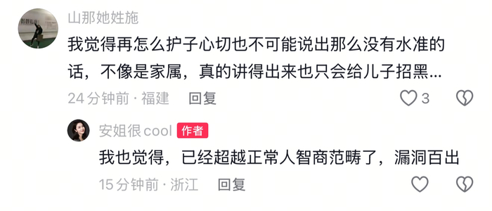 随后,她又在评论区回复了多条评论,对这篇已经查不到发布者的“刘维伟母亲”公告提出质疑——