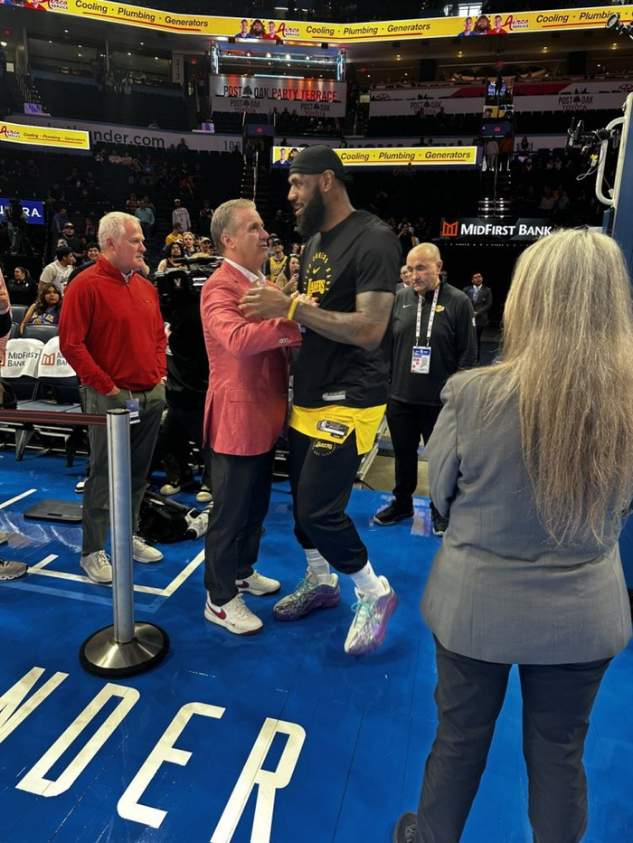 NCAA名帅卡利帕里观战湖雷并与詹姆斯拥抱 曾执教SGA&范德彪等人