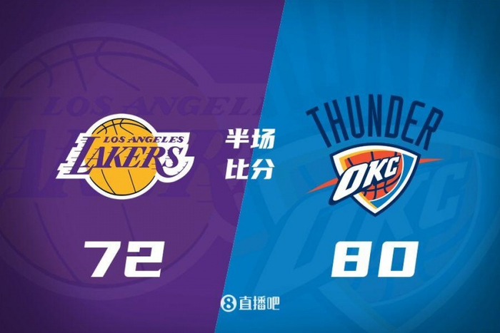 半场战报-詹姆斯11分 东契奇16+4 亚历山大21分 湖人落后雷霆8分