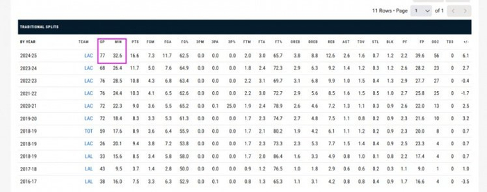 祖巴茨本季出战77场&场均32.6分钟均创生涯新高!场均揽16.6+12.6