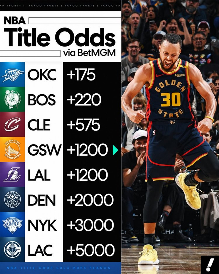 本赛季夺冠赔率:雷霆+175力压绿军 湖人勇士并列第四 快船第八