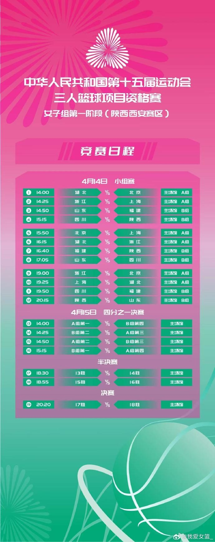 全运会三人女篮资格赛第一阶段赛程出炉 4月14-15日在西安进行