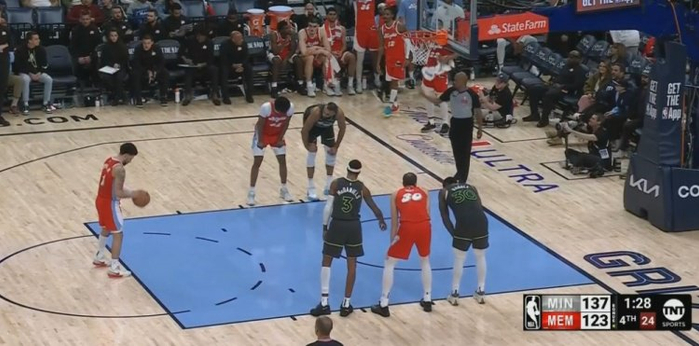 放弃了!末节还剩1分26秒 灰熊落后14分选择撤主力轮换投降