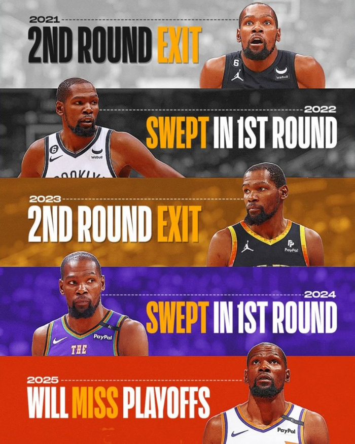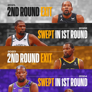 😶杜兰特近五年:两次在首轮被横扫 两次止步次轮 今年直接钓鱼