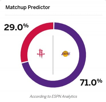 火箭7人休战!ESPN更新火湖大战胜率:湖人来到71% 火箭29%😬