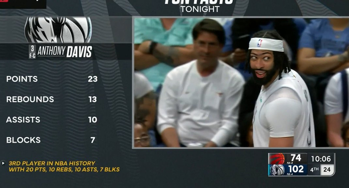 🥵差三个帽四双!浓眉第四节初已砍23+13+10+7!NBA历史第三人