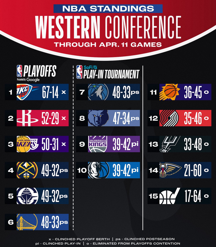 最新排名🚨东部已锁🔓西部战至最后🧯金船勇狼争三名额