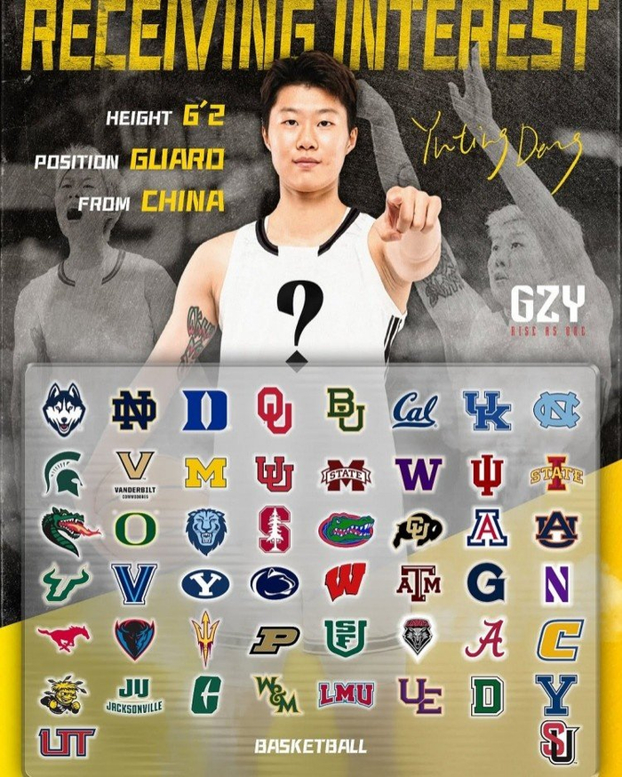 直播吧4月14日讯 此前报道,据经纪公司消息,女篮留美小将邓雨婷自3月28日进入转学窗口以来,已经收到了50所NCAA D1大学抛来的橄榄枝,其中不乏康大、圣母、杜克、贝勒、俄克拉荷马、肯塔基、阿拉巴马等篮球名校。