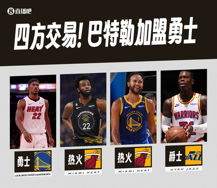 在与热火管理层的持久僵持过后,巴特勒的交易闹剧终于在2月6日落下了帷幕。勇士在一笔四方大交易中得到了巴特勒,这笔交易的主体如下: