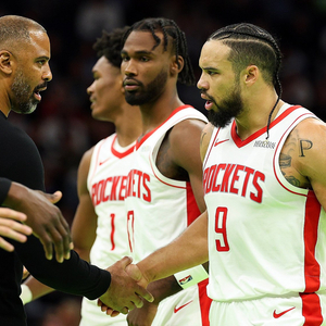 狄龙表示他从去年就注意到了阿门-汤普森的防守天赋:"阿门的运动能力、速度和直觉,他跟伊森都有那种防守的本能,预判传球路线、干扰对方接球、算对手的运球节奏、直接从对手手里生生断球等等。”