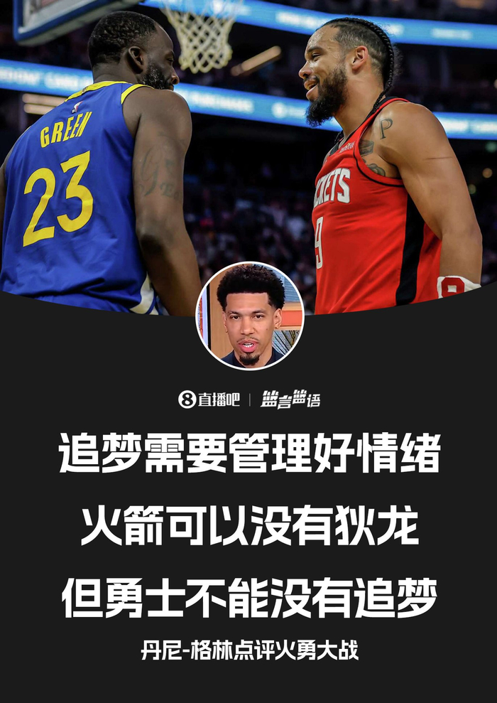 丹尼-格林今日做客ESPN,点评了火勇大战,他说:“我认为追梦的问题更要紧,因为他主导了勇士攻防两端很多的内容,如果他没能保持冷静……如果狄龙被罚出去,休斯敦仍有足够的拼图赢下比赛,但如果没有追梦,勇士就是一支完全不同的球队,我不认为他们能赢下比赛。”