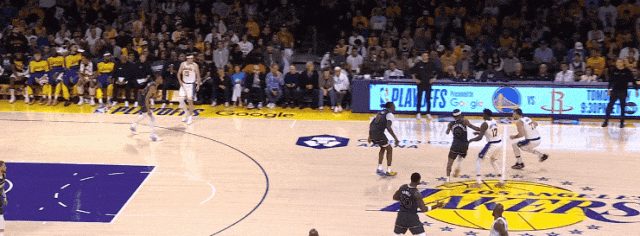 湖人开局一度顺利,防守端放戈贝尔,进攻端里夫斯找戈贝尔后分底角,领先到9比2。
