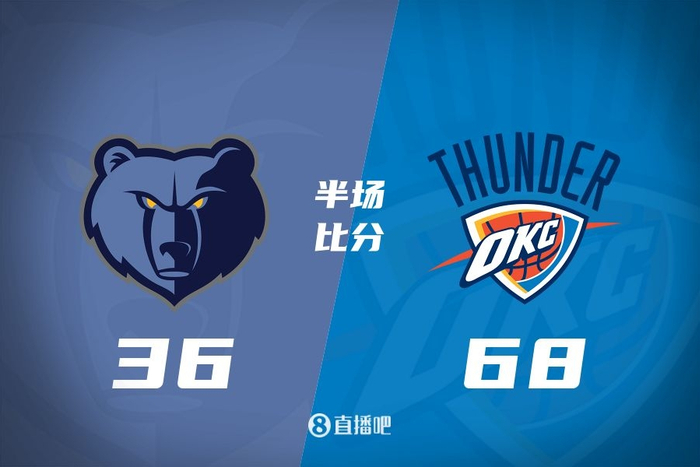 半场-分差最大到35分!SGA10中2 杰伦威&哈滕14分 雷霆68-36灰熊