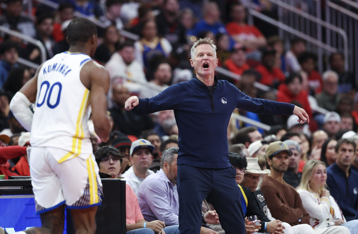 直播吧4月21日讯 从常规赛收官战以来,勇士球员库明加被DNP。名记Marc Stein和Jake Fischer撰文谈到了库明加目前在勇士的角色。