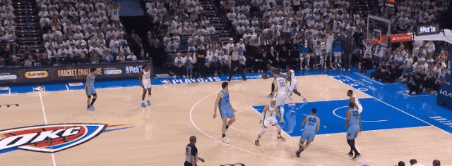 比如小皮彭叫个挡拆,可能抬头发现雷霆三个人在围他,而队友毫无破绽。