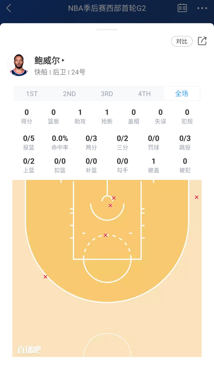 鲍威尔空位三分再丢&快攻被穆雷造成争球 开场不到半节已5中0!