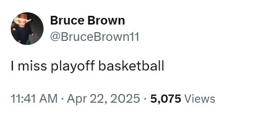 场上激情似火!布鲁斯-布朗观战有感而发:我怀念季后赛篮球