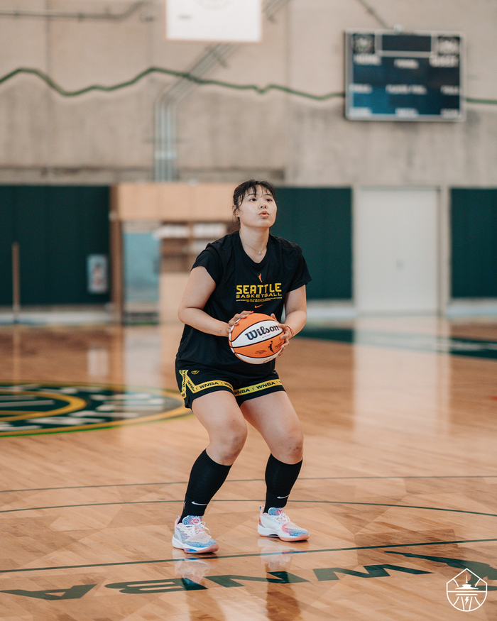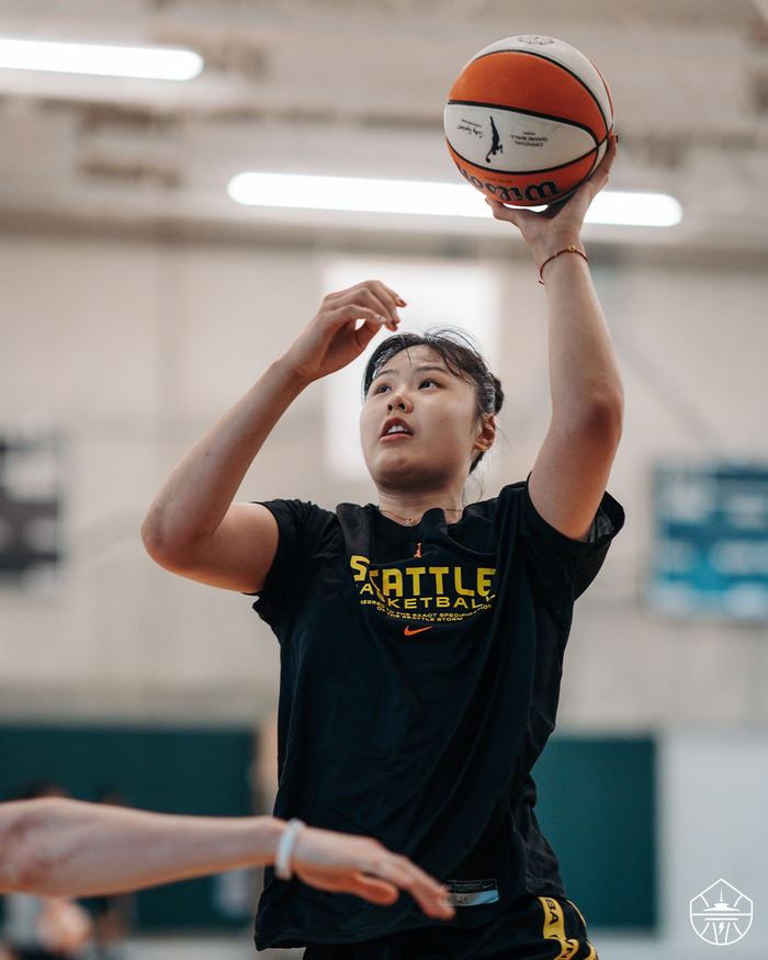 直播吧04月22日讯 WNBA西雅图风暴官方今日更新,晒出中国女篮中锋李月汝的训练照,并配文:“李在翡翠之城⛈️。”