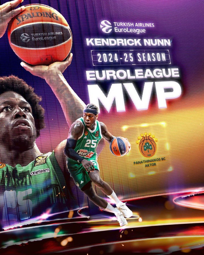 直播吧04月22日讯 前热火、湖人球员肯德里克-纳恩当选2024-25赛季欧洲篮球联赛MVP。