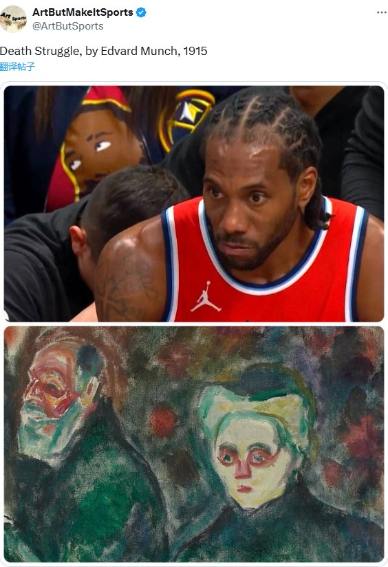赛后,运动&艺术账号ArtButMakeItSports更新了社交媒体,配文:“《垂死挣扎》,爱德华-蒙克,1915 年。”(如下图)