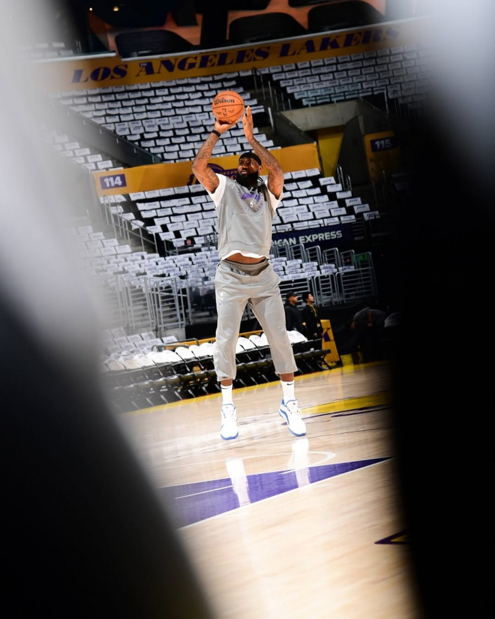 此外,媒体NbaFashionFits也晒出了詹姆斯的赛前热身照。