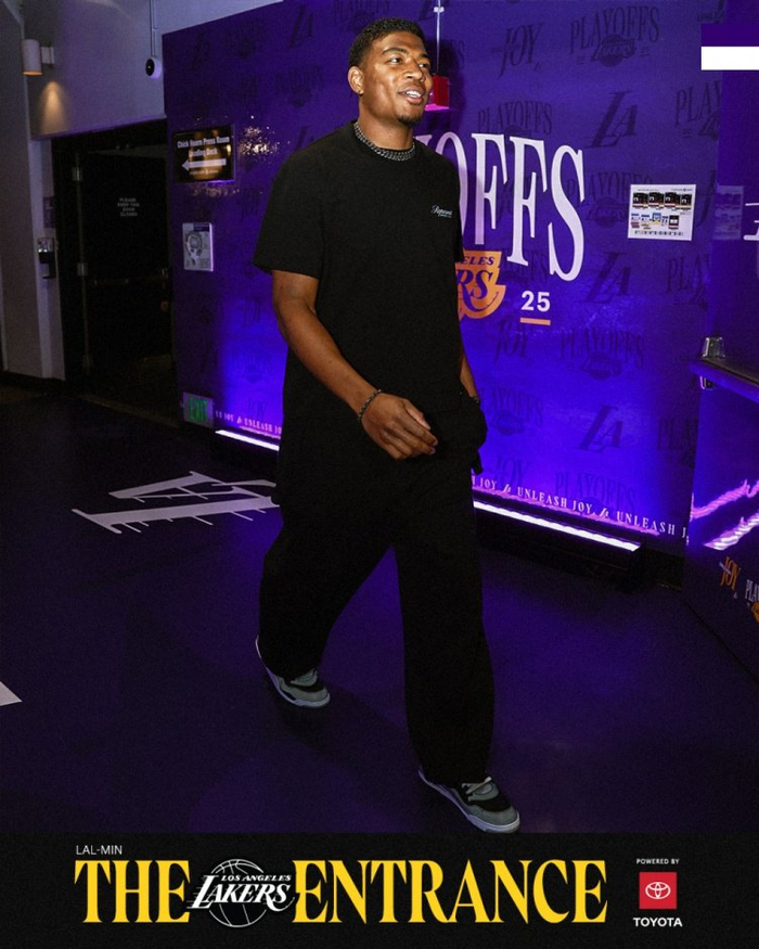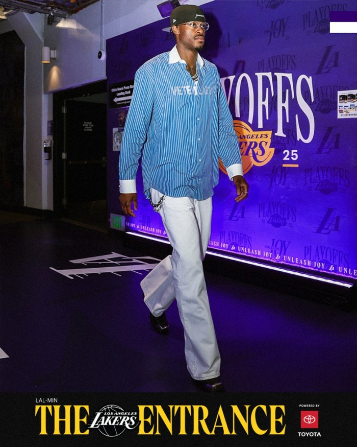 直播吧4月23日讯 今日,湖人官方推特晒出了一组球员赛前入场照。