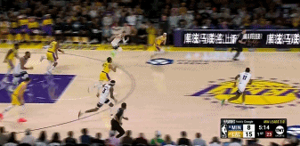 直播吧4月23日讯 NBA季后赛,湖人首节以34-15领先森林狼。