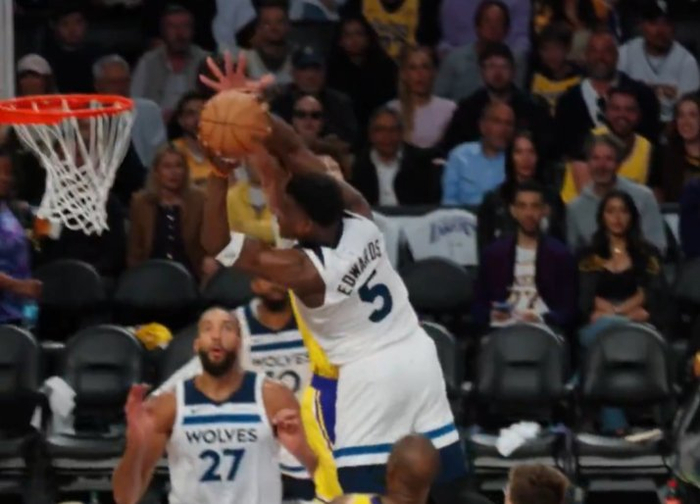 光速起飞!爱德华兹中路突破垫步起飞斜着身子双手隔扣海斯