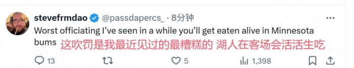 1-1!美湖蜜:裁判为森林狼尽力了&糟糕的吹罚 我湖5场晋级