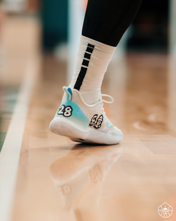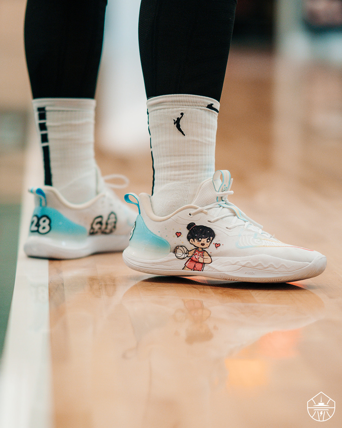 值得一提的是,风暴还特地发布了两张小宝定制球鞋的特写照。