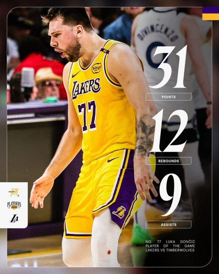 赛后湖人官方评选出了本场比赛最佳球员——东契奇。