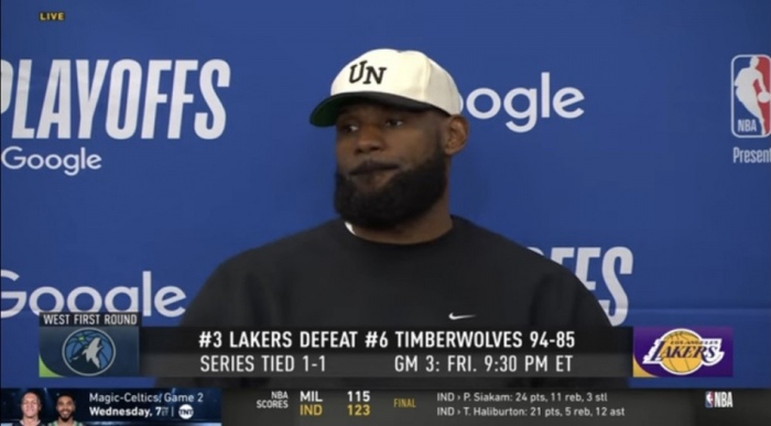 直播吧4月23日讯 今日,湖人94-85主场击败森林狼,将系列赛大比分扳为1-1平。赛后,湖人前锋詹姆斯接受了采访。