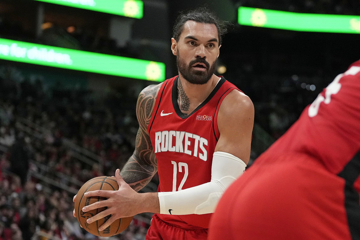 直播吧4月24日讯 火箭中锋亚当斯在今日对阵勇士赛前接受媒体采访。