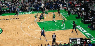 独角兽!波尔津吉斯攻防发力 大帽+暴扣帮助球队取得两位数优势