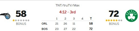 第三节,凯尔特人打出9-0逼迫魔术还剩4分12秒时再次喊出暂停,但随后至比赛结束,魔术仅有最后一个暂停了。
