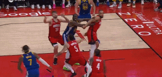 申京抢到篮板&希尔德试图刀球扫到脸部 裁判吹后者犯规&没有回看