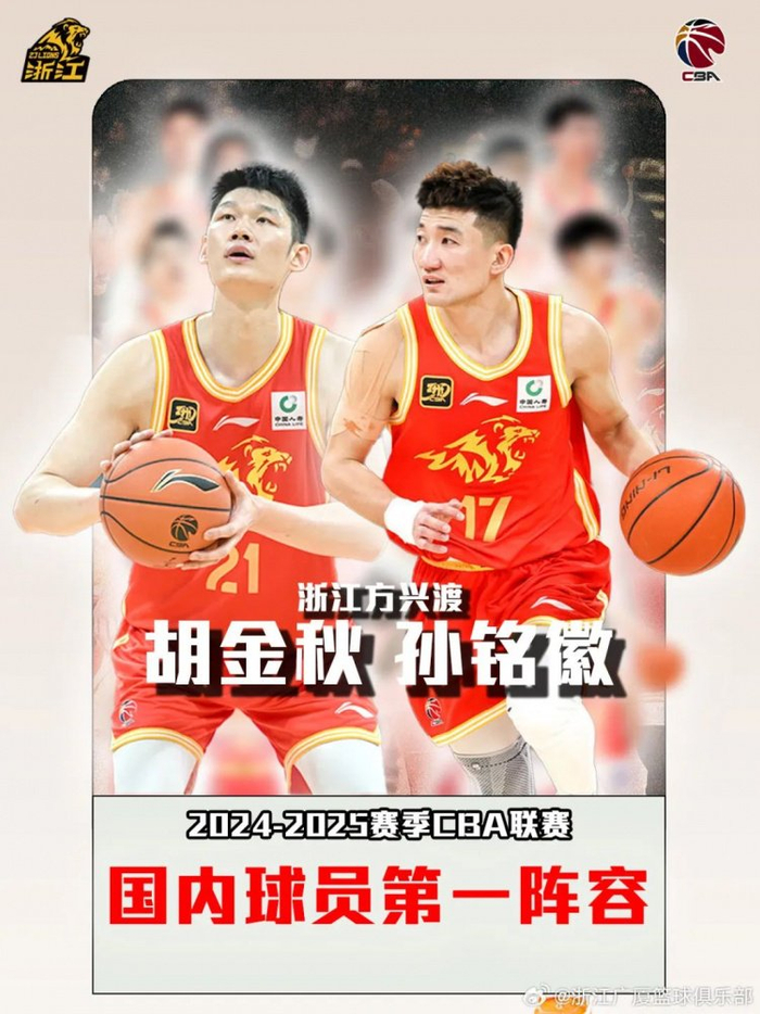 国内球员第一阵容2人胡金秋+孙铭徽;