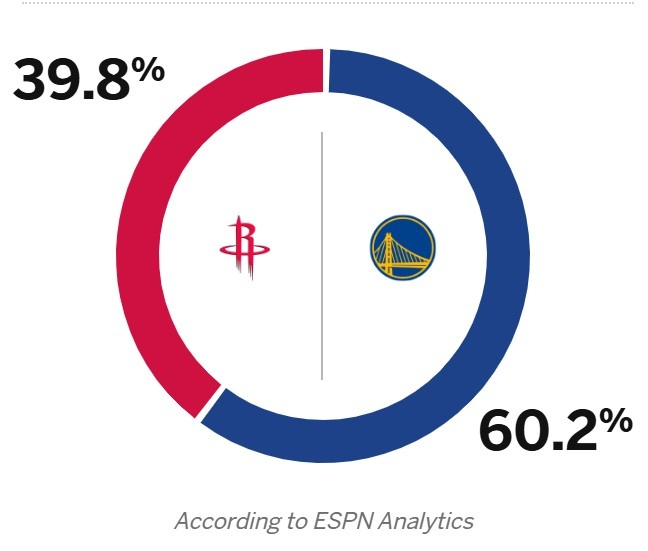 1-1移师湾区!ESPN预测G3胜率:勇士60.2% 火箭仅39.8%