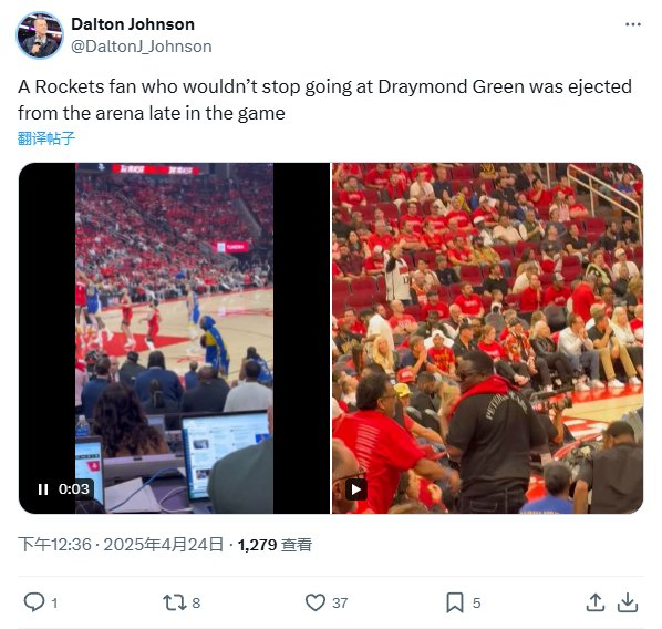 线下对线🤬火箭球迷因不停攻击追梦而被驱逐出场