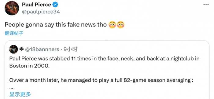 被捅11刀后赛季全勤且场均25分!皮尔斯:人们会说这是假新闻