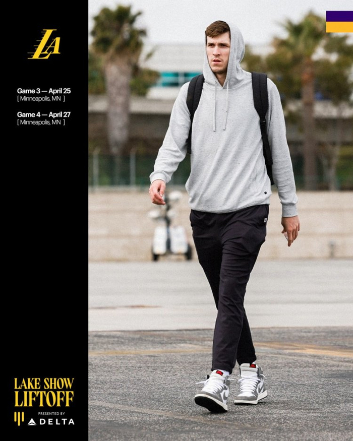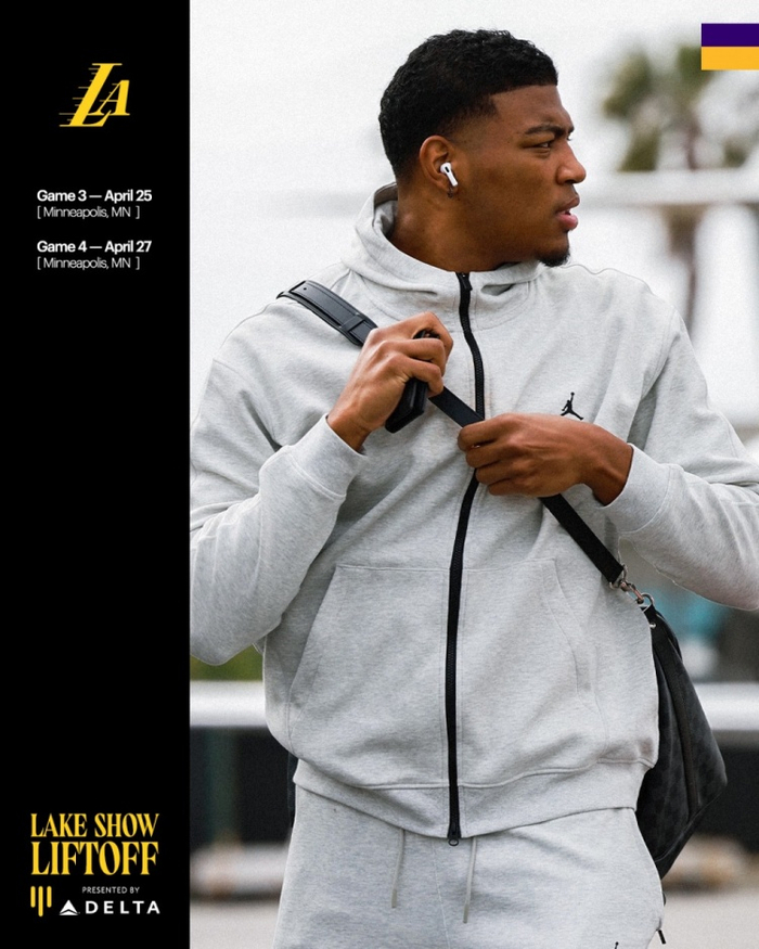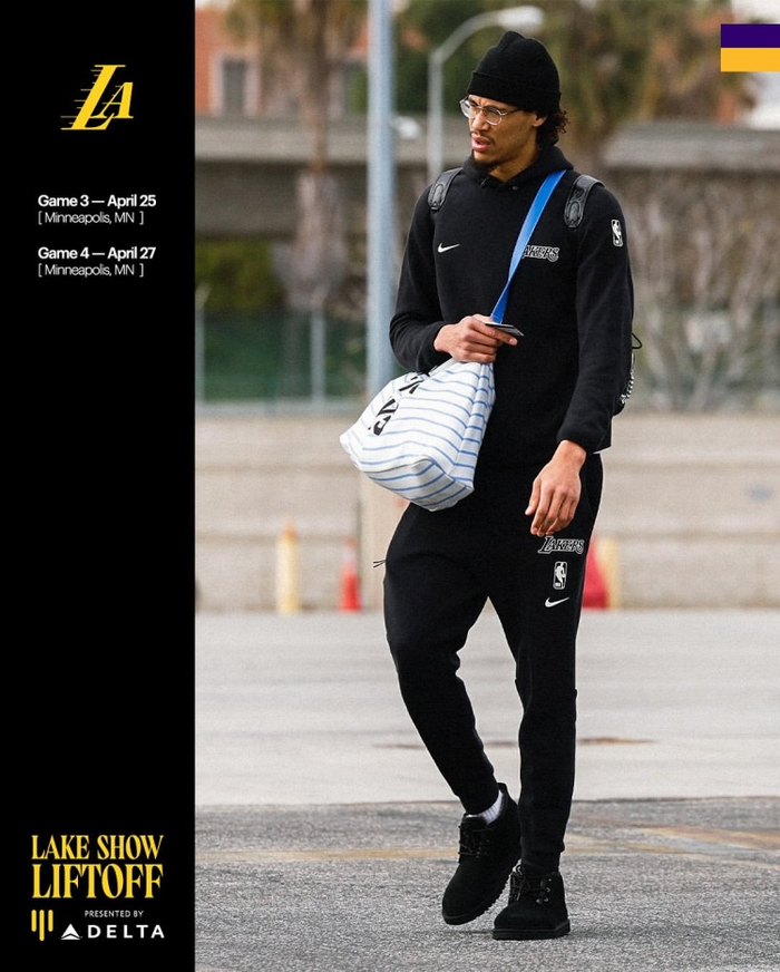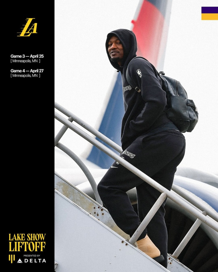 “客场挑战G3和G4✈️”湖人官推写道。