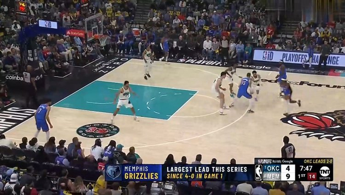G3灰熊开场9-4领先雷霆5分!继G1开局4-0后本轮系列赛最大领先!