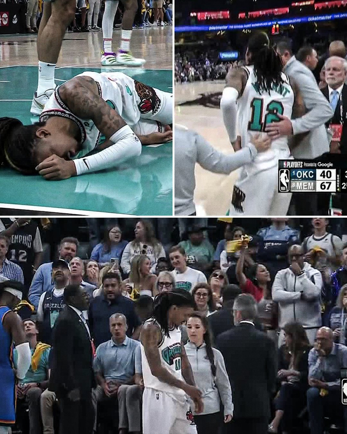 😧空中被多特撞翻!🚨灰熊官方:莫兰特因髋部伤势提前退赛