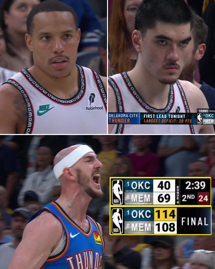 史诗级!雷霆逆转灰熊29分️平季后赛历史第二大逆转!!