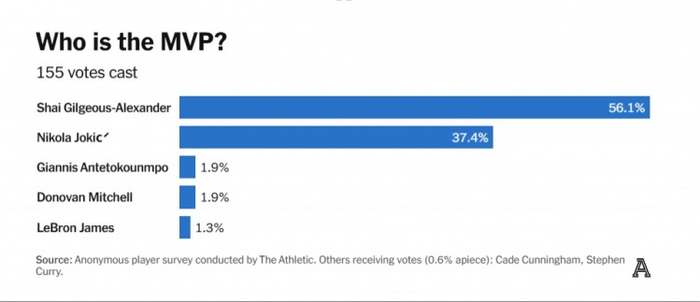 讨论|本季TA匿名投票:SGA夺MVP 五年后文班是门面 哈利最被高估