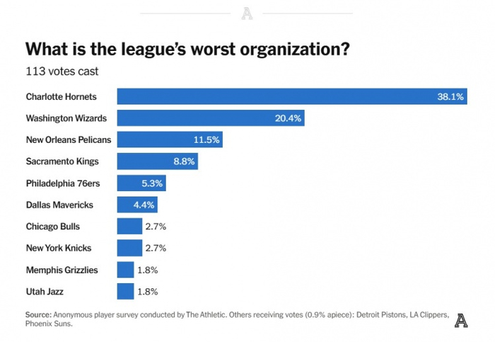 (投票结果:黄蜂38.1%、奇才20.4%、鹈鹕11.5%、国王8.8%、76人5.3%、独行侠4.4%、公牛&尼克斯2.7%、灰熊&爵士1.8%)