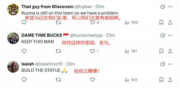 雄鹿球员特伦特今天大爆发,他三分12中9轰下37分3篮板4抢断,并且0失误,正负值+21。网友对此进行热议: