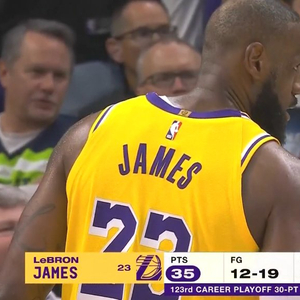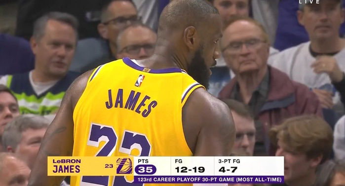 👑35分了!詹姆斯季后赛生涯123次30+ NBA历史断档第一!