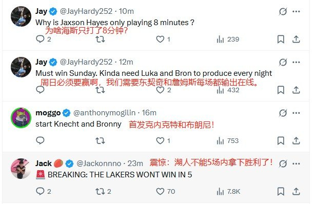 网友热议湖人输球:八村必须走 克内克特&布朗尼首发 海斯多打啊