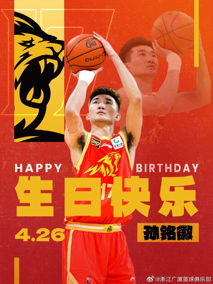 🎂真挚的祝福!祝广厦男篮球星孙铭徽29岁生日快乐!